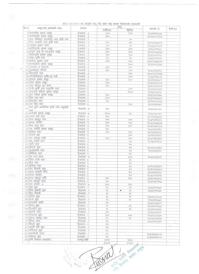 राष्ट्रिय कृषि आधुनिकीकरण कार्यक्रमको लाभग्राही छनौट नतिजा प्रकाशन सम्बन्धी सूचना ।