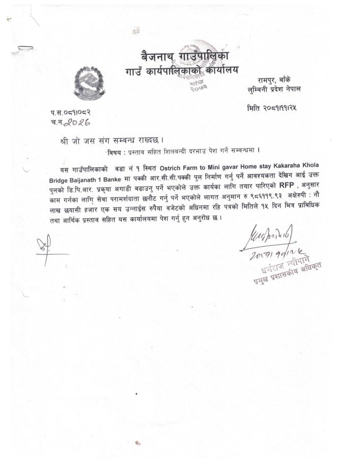 लिखित दरभाउ पत्र पेश गर्ने बारे - बाख्रामा नश्ल सुधारको लागि उन्नत अजमेरी जातको बोका वितरण )