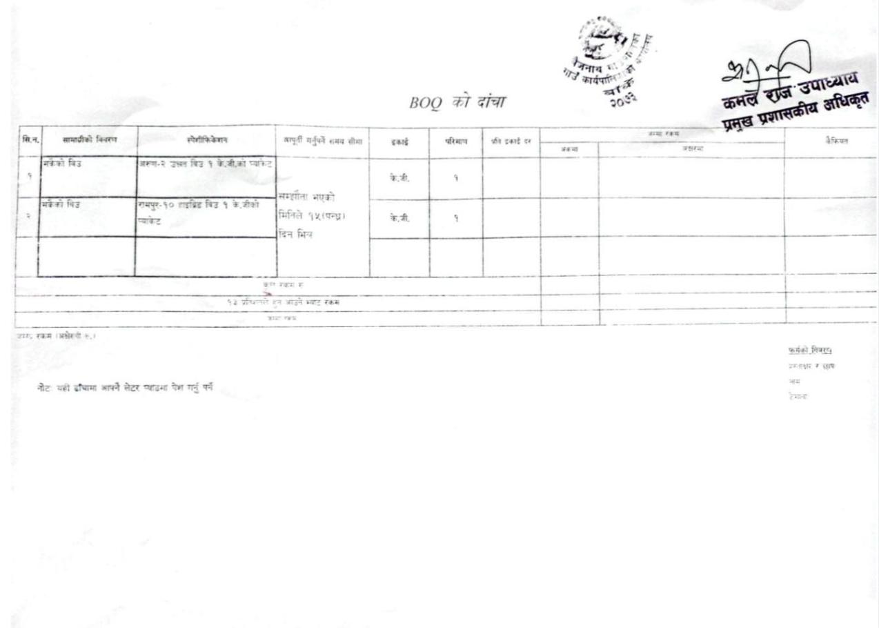 लिखित दरभाउ पेश गर्ने बारे । (तरकारी बिउ ५० प्रतिशत अनुदानमा वितरण)