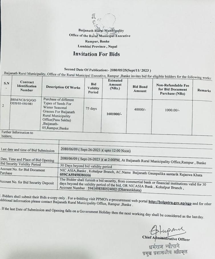 प्रस्ताव आव्हान सम्बन्धि सूचना ।(रामनगर देखि सुतैया बैजनाथ ३)