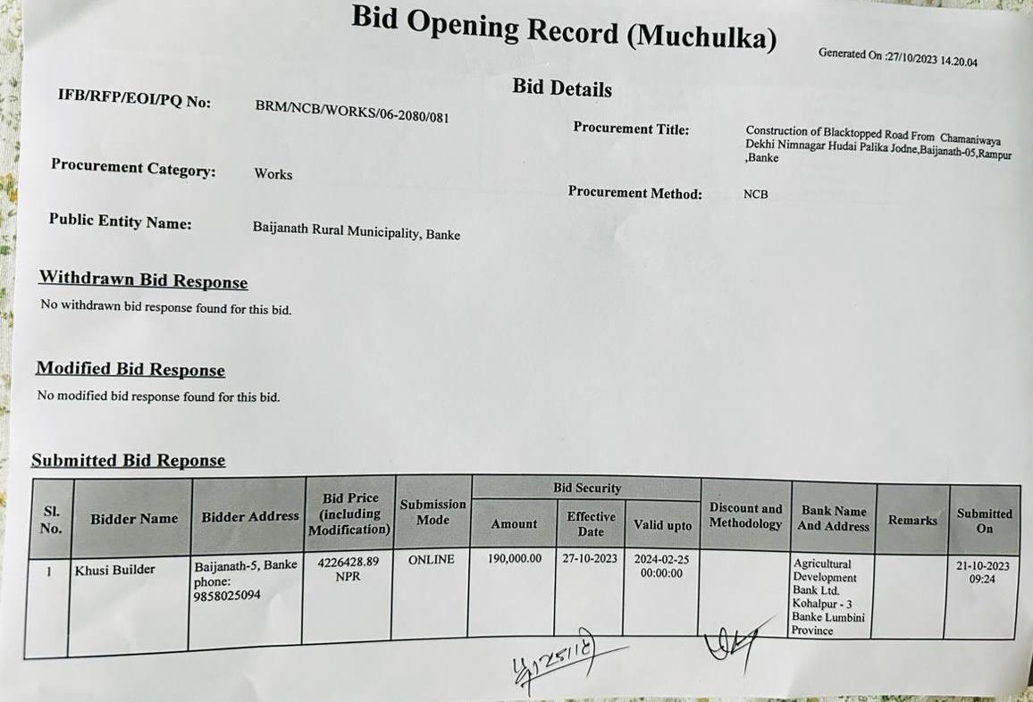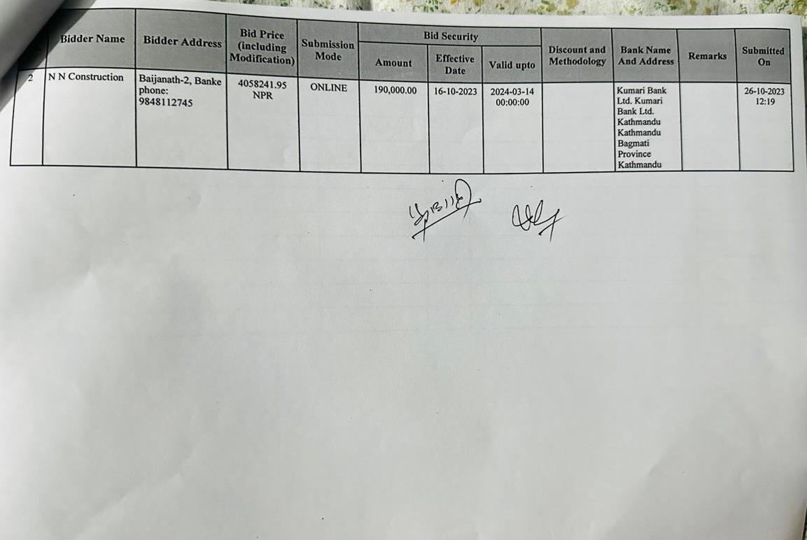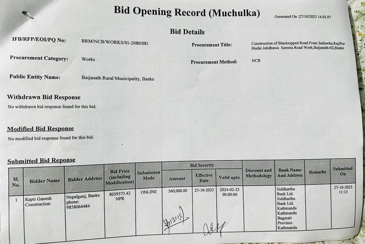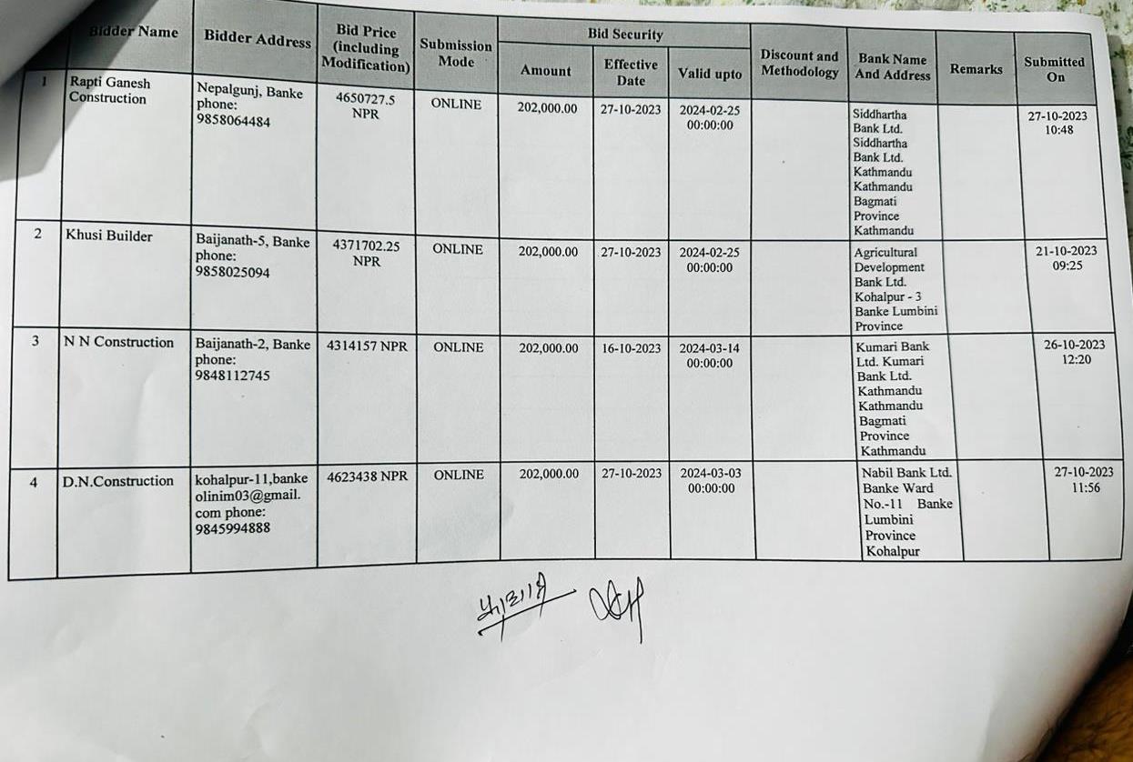 प्रस्ताव आव्हान सम्बन्धि सूचना ।(रामनगर देखि सुतैया बैजनाथ ३)