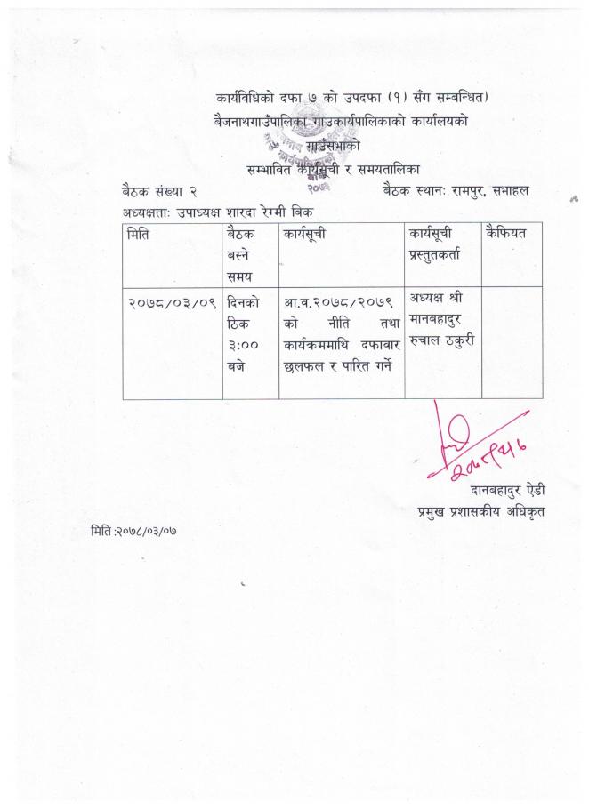 नीति तथा कार्यक्रममाथि छलफल गर्न बसें गाउँ सभा बैठक कार्यसूची सम्बन्धि सूचना !