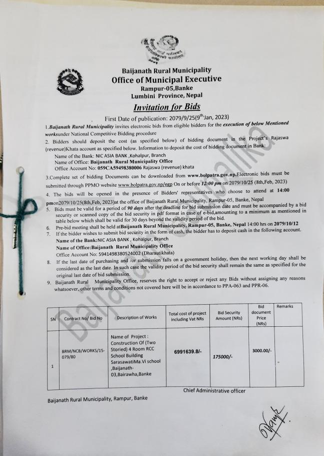 प्रस्ताव आव्हान सम्बन्धि सूचना ।(construction of ward 6 administrative office building)