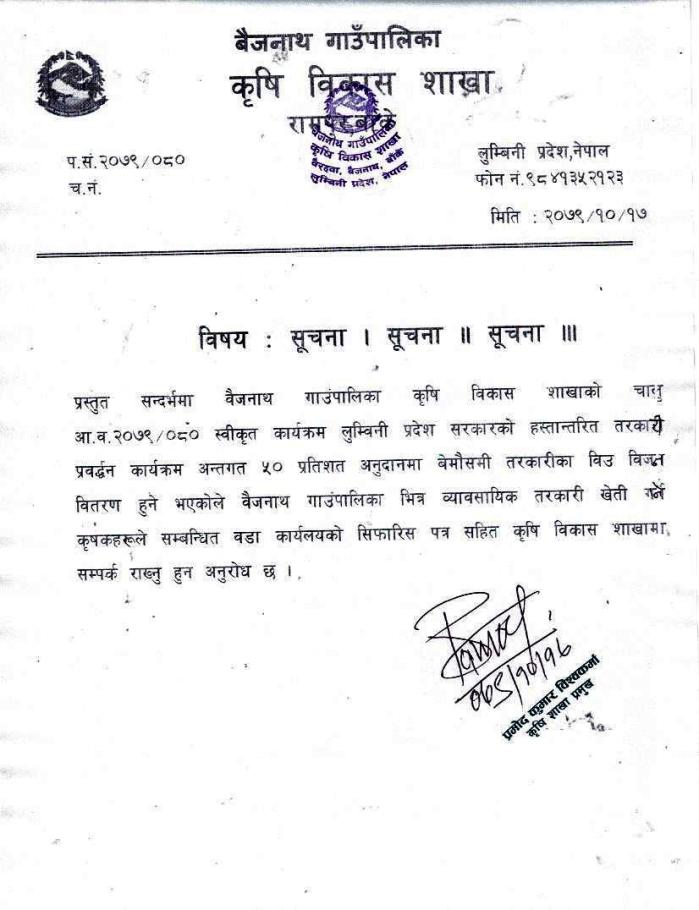 राष्ट्रिय कृषि आधुनिकीकरण कार्यक्रमको लाभग्राही छनौट नतिजा प्रकाशन सम्बन्धी सूचना ।