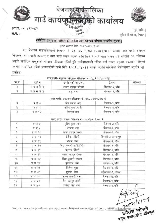 शारीरिक तन्दुरुस्ती परिक्षणको नतिजा तथा स्वास्थ्य परिक्षण सम्बन्धि सूचना ।