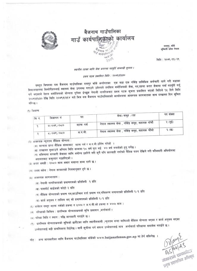 » स्टाफ नर्स र अ.न.मी.को सेवा करारमा पदपूर्ति सम्बन्धी सूचना ।।