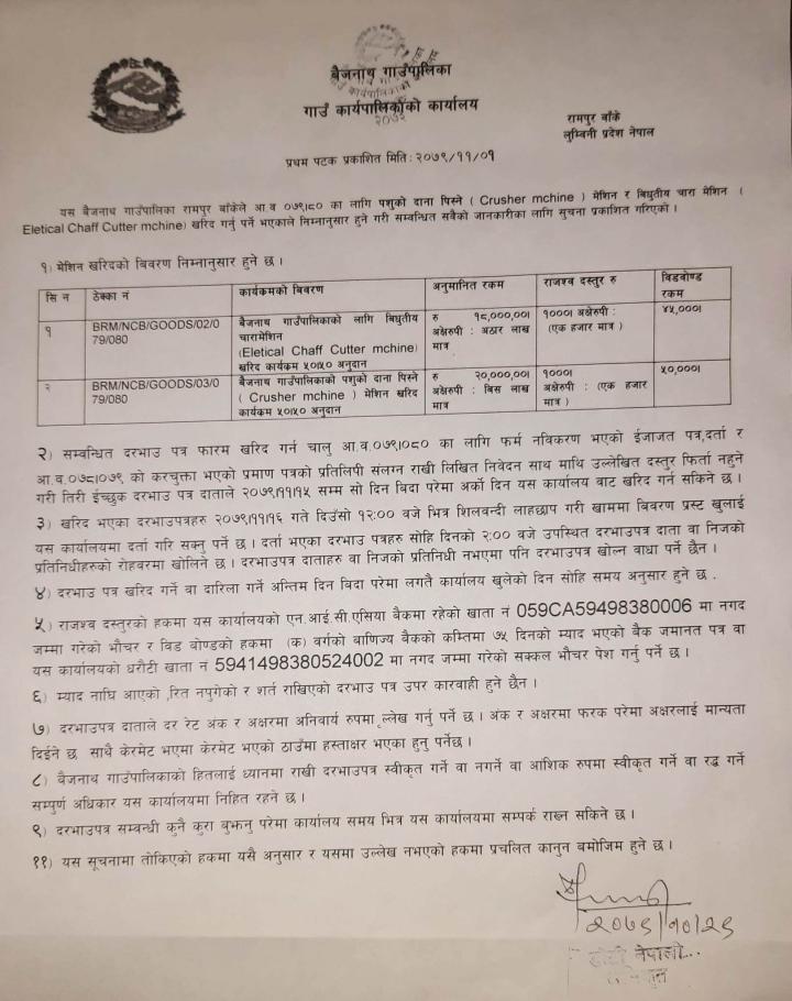 » ५०/५० % काे अनुदानमा विधुतीय चारा मेशिन र पशुकाे दाना पिस्ने मेशिन खरिद गर्ने सम्बन्धि सुचना ।।