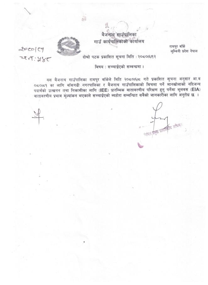 IEE हुन पर्ने भुलवस EIA भएकाले सच्च्याईएको सम्बन्धमा ।